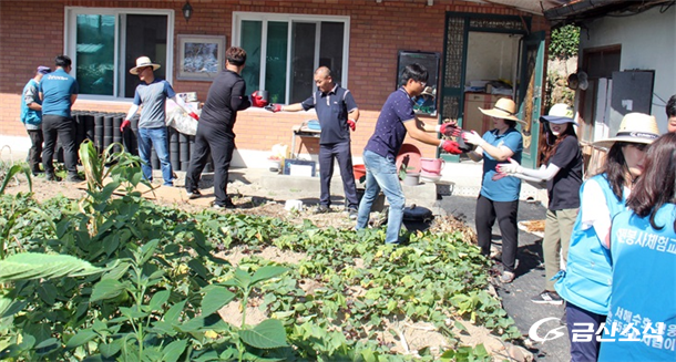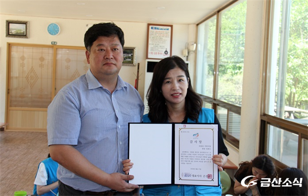 À̳¯ ºÀ»ç¿¡´Â ¾î¸°ÀÌÁý ¿øÀå´Ô 10¿©ºÐ°ú ´ëÀüºÀ»çüÇè±³½Ç ȸ¿ø, ±Ý»ê¿¡¼ Âü¿©ÇÑ 6¸íÀÇ ÀÚ¿øºÀ»çÀÚ, Á¦¿ø¸é ¸ÂÃãÇüº¹ÁöÆÀ ´ã´ç, ±Ý»ê¼Ò½Ä ÀÓÁ÷¿ø µî 20¿©¸íÀÌ Âü¿©ÇßÀ¸¸ç, ¸¶´ÞÇÇ °¡µç¿¡¼ Ưº°ÇÑ °ü½ÉÀ» °®°í ºÀ»ç¸¦ ÇØ ÁØ ¾î¸°ÀÌÁý ¿øÀå´Ôµé¿¡°Ô (ÁÖ)±Ý»ê¼Ò½Ä¿¡¼ °¨»çÀåÀ» Àü´ÞÇß´Ù.