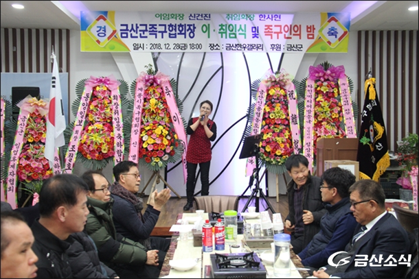 ¡®±Ý»ê±º Á·±¸Çùȸ ȸÀå ÀÌ¡¤ÃëÀÓ½Ä ¹× Á·±¸ÀÎÀÇ ¹ã¡¯ Çà»ç°¡ 28ÀÏ ¿ÀÈÄ 6½Ã30ºÐ ±Ý»êÇѿ찶·¯¸®(Ãæ³² ±Ý»ê±º ³²Àϸé Ȳdz¸® 13)2Ãþ¿¡¼ ¼ºÈ²¸®¿¡ °³ÃֵƴÙ.