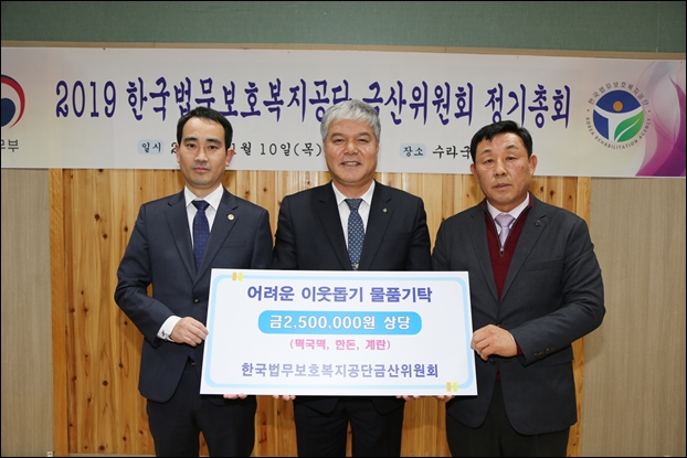 Çѱ¹¹ý¹«º¸È£º¹Áö°ø´Ü ±Ý»êÀ§¿øÈ¸°¡ Áö³­ 10ÀÏ Á¤±âÃÑȸ¿¡¼­ ÁÖÀ§ÀÇ ¼Ò¿ÜµÈ ÀÌ¿ôÀ» À§ÇØ ½á ´Þ¶ó¸ç °¡·¡¶± 10¸»°ú µÅÁö°í±â ¸ñ»ì 100kg, °è¶õ 120ÆÇ µî ½Ã°¡ 250¸¸¿ø »ó´çÀÇ ¹°Ç°À» ±âŹÇß´Ù.