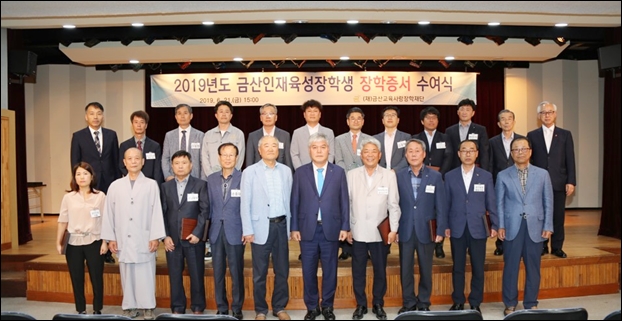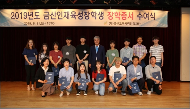(Àç)±Ý»ê±³À°»ç¶ûÀåÇÐÀç´Ü(ÀÌ»çÀå Á¶½Å¿µ)ÀÌ Áö³­ 21ÀÏ ±Ý»ê´Ù¶ô¿ø ¼Ò°ø¿¬Àå¿¡¼­ Çлý ¹× Çкθð¿Í ÀåÇбâ±Ý ÈÄ¿øÈ¸¿ø µî 200¿©¸íÀÌ Âü¼®ÇÑ °¡¿îµ¥ 2019³âµµ ±Ý»ê±º ÀÎÀçÀ°¼º ÀåÇлý¿¡ ´ëÇÑ ÀåÇÐÁõ¼­ ¼ö¿©½ÄÀ» °¡Á³´Ù.