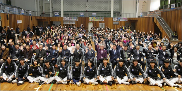 ´Ù¹®È°¡Á· Á¤ÂøÁö¿ø µî ´Ù¹®È Àνݳ¼±¿¡ ±â¿©ÇÑ À¯°øÀÚµéÀ» °Ý·ÁÇϱâ À§ÇØ ¸¶·ÃµÈ ǥâ¼ö¿©½Ä¿¡¼´Â ¡®´ÙÇÔ²² ÇÏ´Â ¼¼»ó ¸¸µé±â¡¯ ±è¿µ¼· ȸÀå°ú ¡®´ÙÇÔ²² ¹è¿ìÀÚ ÀÚÁ¶¸ðÀÓ¡¯ À̿뼮 º¹¼ö¸é ȸÀåÀÌ ¾ç½ÂÁ¶ µµÁö»ç·ÎºÎÅÍ Ç¥Ã¢À» ¼ö¿©¹Þ¾Ò´Ù.