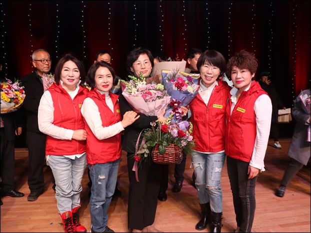 ¡ã±Ý»ê±º¿©¼ºÀÚ¿øºÀ»çȸ ȸÀå(°¡¿îµ¥)°ú ȸ¿øµéÀÌ ºÀ»ç»óÀ» ¼ö»óÇÑ ÈÄ ±â³ä»çÁøÀ» ÃÔ¿µÇÏ´Â ¸ð½À.