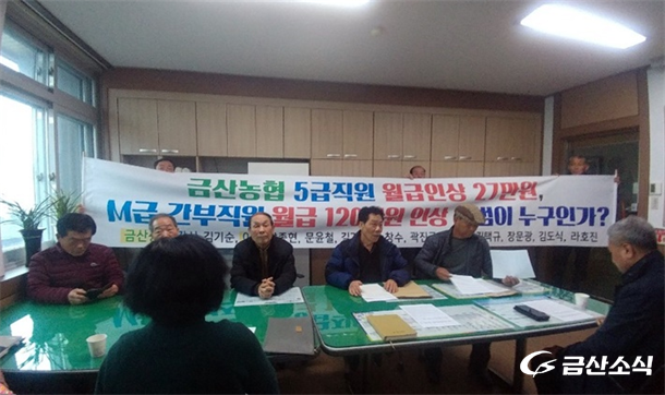 23ÀÏ ¿ÀÀü10½Ã ±Ý»ê³óÇù ÀÓ¿ø 8¸íÀÌ ¡®±Ý»ê³óÇù 5±ÞÁ÷¿ø ¿ù±ÞÀλó 27¸¸¿ø, M±Þ °£ºÎÁ÷¿ø ¿ù±Þ 120¸¸¿ø Àλó ÁÖ¹üÀÌ ´©±¸Àΰ¡¡¯¶ó´Â Ç÷¡Ä«µå¸¦ µé°í ±âÀÚȸ°ßÀ» °®°í ÀÖ´Â ¸ð½À.