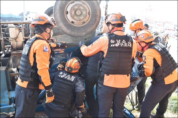 ÀÌ¿¡ ÇöÀå¿¡ Ã⵿ÇÑ ±¸Á¶´ë´Â ½Å¼ÓÈ÷ À¯¾ÐÀåºñ¸¦ »ç¿ëÇØ ¿îÀüÀÚ ±è ¾¾¸¦ ¾ÈÀüÇÏ°Ô ±¸Á¶ ÈÄ ½º½º·Î È­¹°Â÷¿¡¼­ Å»ÃâÇÑ µ¿½ÂÀÚ 2¸í°ú ÇÔ²² Àα٠º´¿øÀ¸·Î À̼ÛÇß´Ù.