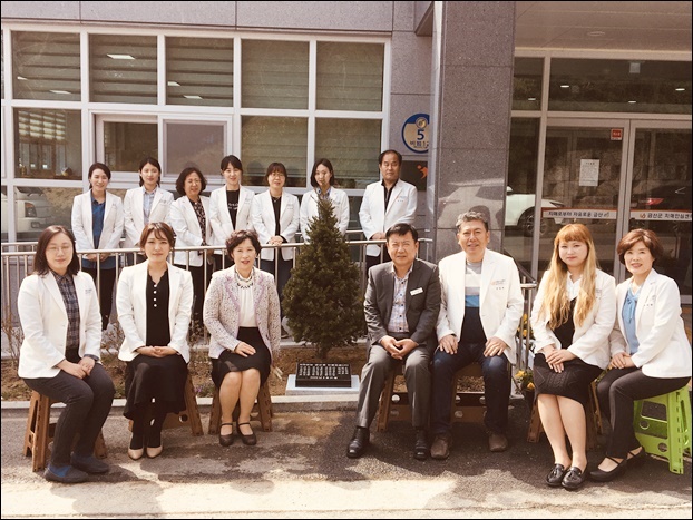 ¡ã±Ý»ê±ºÄ¡¸Å¾È½É¼¾ÅÍ Á÷¿øµéÀÌ ½Ä¼öµÈ ÁÖ¸ñ³ª¹« ¾Õ¿¡¼ ±â³äÃÔ¿µÀ» ÇÏ´Â ¸ð½À. ¨Ï±Ý»ê±ºÄ¡¸Å¾È½É¼¾ÅÍ