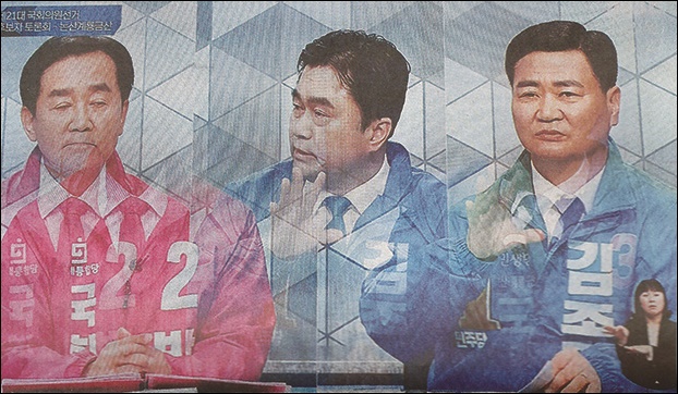 ¡ã A½Å¹®ÀÌ 1¸é¿¡ °³Á¦ÇÑ »çÁø. »çÁø¿¡¼ ±èÁ¾¹Î Èĺ¸(°¡¿îµ¥)ÀÇ ±âÈ£ÀÎ 1¹øÀº º¸ÀÌÁö ¾Ê°í ±¸µµ»ó µÚ·Î ºüÁ® ÀÖ´Â °Íó·³ º¸À̸ç, ÇѹÎÈñ Èĺ¸(¿À¸¥ÂÊ) »çÁø¿¡ ±èÁ¾¹Î Èĺ¸ÀÇ ¸öÅëÀÌ µ¡ºÙ¿©Á³À¸¸ç, ÇÑ Èĺ¸ÀÇ ¹øÈ£ÀÎ 3¹øÀÌ ±× À§¿¡ ÀÖ´Ù. ÀÌ¿¡ ºñÇØ ¹Ú¿ì¼® Èĺ¸(¿ÞÂÊ)´Â ÀÔÈĺ¸ ¹øÈ£ÀÎ 2¹øÀÌ µÎ ¹ø °³Á¦µÅ ÀÖ´Ù.
