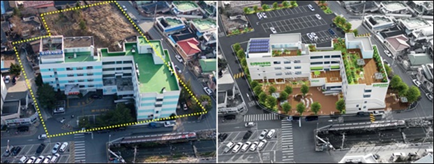 ÀÌ¿¡ µû¶ó ¹æÄ¡µÅ ÀÖ´ø Æóº´¿ø ³ëÈİÇÃ๰(ÁöÇÏ 1Ãþ Áö»ó 5Ãþ 4,597§³)Àº ģȯ°æ ¸¶°¨Àç ¹× °íÈ¿À² ÀÚÀç »ç¿ëÀ¸·Î ¿¡³ÊÁöÀý°¨ ģȯ°æ ½Ã¼³·Î °Åµì³ª°Ô µÇ¸ç, °Ç¹° ¸®¸ðµ¨¸µ ¿Ü¿¡µµ ½º¸¶Æ® °ø¿µ ÁÖÂ÷Àå Á¶¼º, Áֹν°ÅÍ µîÀ» Á¶¼ºÇØ ¿øµµ½É ±â´Éȸº¹°ú ÁÖ¹ÎÁ᫐ °ø°£À¸·Î Å»¹Ù²ÞÇÑ´Ù.