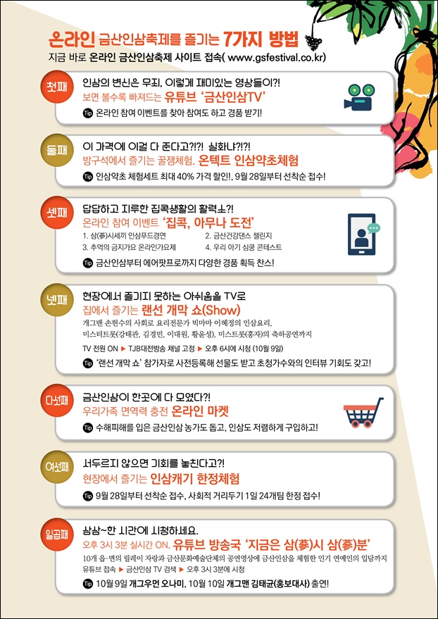 ÀÌ ¹Û¿¡µµ SNS¿¡¼ Áñ±æ ¼ö ÀÖ´Â ´Ù¾çÇÑ ¿Â¶óÀÎ À̺¥Æ®µéÀÌ ÁñºñÇϸç ÀÚ¼¼ÇÑ ³»¿ëÀº ¿Â¶óÀÎ ÃàÁ¦ ȨÆäÀÌÁö(www.gsfestival.co.kr)¿¡¼ È®ÀÎÇÒ ¼ö ÀÖ´Ù.