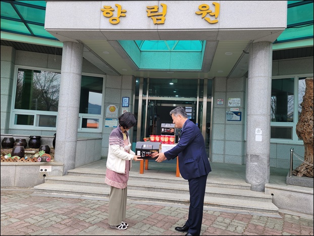 <»çÁø> ¹Ú°æ¿ë ±Ý»ê±º Àλï¾àÃʰúÀåÀÌ Ç⸲¿øÀ» ã¾Æ ±Ý»êÀλïÁ¦Ç°À» ÀüÇϰí ÀÖ´Ù.