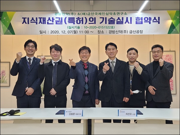 (Àç)±Ý»ê±¹Á¦Àλï¾àÃÊ¿¬±¸¼Ò´Â Áö³ 7ÀÏ ¿¬±¸¼Ò°¡ º¸À¯ ÁßÀÎ ¡®ÆØÈÈæ»ï ¹× ÀÌÀÇ Á¦Á¶¹æ¹ý°ú °ü·ÃµÈ Áö½ÄÀç»ê±Ç(½Ç½Ã±â¼ú:10-2020-0151522È£)¡¯À» °æ¹æ½Å¾à(ÁÖ)¿¡ ±â¼úÀÌÀüÇÏ°í »ç¾÷ȸ¦ À§ÇÑ Àü¼ö ¹× ±â¼úÇù·ÂÀ» ¾à¼ÓÇÏ´Â Çù¾àÀ» ü°áÇß´Ù°í ¹àÇû´Ù.