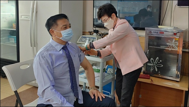 ¹®Á¤¿ì ±Ý»ê±º¼ö´Â ¡°¿À´ÃºÎÅÍ ½ÃÀ۵Ǵ Äڷγª19 ¿¹¹æÁ¢Á¾Àº Áý´Ü¸é¿ª Çü¼ºÀÇ Áß¿äÇÑ ±âÁ¡ÀÌ µÉ °Í¡±À̶ó°í °Á¶ÇÏ¸ç ¡°±ºÀÇ ¿ì¼±Á¢Á¾ ´ë»óÀº ÃÑ 326¸íÀ¸·Î Äڷγª19 ¹é½ÅÀÇ ¼ö±Þ»óȲ¿¡ ¸ÂÃç Äڷγª19 ÃÖÀü¼±¿¡¼ ±Ù¹«Çϰí ÀÖ´Â 1Â÷ ´ëÀÀ¿ä¿ø ¹× °íÀ§Çè ÀÇ·á±â°ü º¸°Ç ÀÇ·áÀεéÀ» ´ë»óÀ¸·Î ¿ì¼± Á¢Á¾ÇÒ ¿¹Á¤¡±À̶ó°í ¹àÇû´Ù.