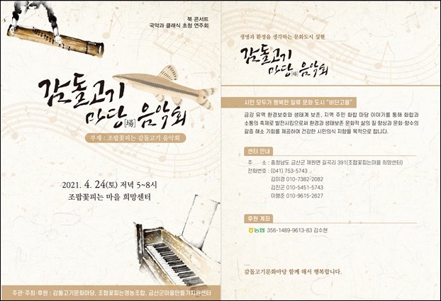 ¡ã Á¦¿ø¸é¹ÎµéÀÌ ¸¶·ÃÇØ 24ÀÏ ¿ÀÈÄ 5½Ã Á¶ÆË²ÉÇÇ´Â ¸¶À» Èñ¸Á¼¾ÅÍ¿¡¼ °³ÃֵǴ ¡®°¨µ¹°í±â ¸¶´ç À½¾Çȸ¡¯ È«º¸¹°. ¨Ï±Ý»ê±ºÃ»