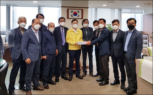 À̸¦ À§ÇØ Áö³ 5¿ù25ÀÏ ²¢ÀÙ ³ó°¡ÀÇ »ýÁ¸±Ç »ç¼ö¸¦ À§ÇÑ Áýȸ¿¡ ÀÌ¾î ±Ý»ê±º ÃßºÎ¸é °íÇü¿¬·á ½Ã¼³ ¹Ý´ë 3¸íÀÇ °øµ¿À§¿øÀå(¿ÞÂÊ 7¹øÂ°ºÎÅÍ Àå´ë1¸® ±æÀϺÀ ÀÌÀå, ²¢ÀÙÀÛ¸ñȸ ¾çÀÎÈ£ ȸÀå, Ãߺθé À̱¤¿ì ÀÌÀåÇùÀÇȸÀå)ÀÌ Áö³6¿ù3ÀÏ Ãæ³²µµ ÀÌÇÊ¿µ ÇàÁ¤ºÎÁö»ç¿¡°Ô 6045¸íÀÇ °íÇü¿¬·á ½Ã¼³ Áֹιݴ뼸íÀ» Àü´ÞÇß´Ù.