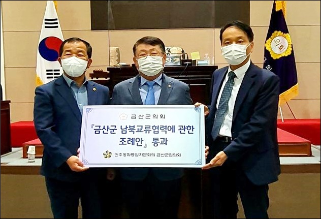 ¡ã(»çÁø ¿ÞÂʺÎÅÍ) ¾È±âÀü ÀÇÀå, ±èÈ£Åà ȸÀå, Á¤Çöµµ °£»ç°¡ Áö³ 23ÀÏ ¡®±Ý»ê±º ³²ºÏ±³·ùÇù·Â¿¡ °üÇÑ Á¶·Ê¾È¡¯ÀÌ Åë°úµÈ ÈÄ ±â³ä»çÁøÀ» ÃÔ¿µÇÏ´Â ¸ð½À. ¨Ï¹ÎÁÖÆòÅë±Ý»ê±ºÇùÀÇȸ