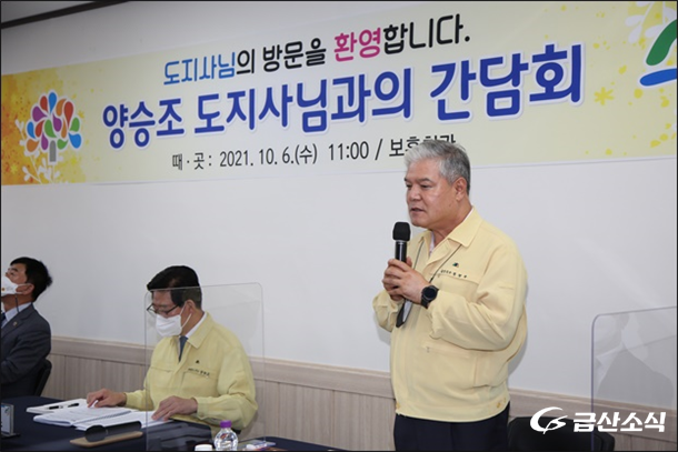 ÀÌ ÀÚ¸®¿¡¼ ¹®Á¤¿ì ±º¼ö´Â ¡°¾ç½ÂÁ¶ µµÁö»ç´Ô²²¼´Â ±Ý»ê¿¡ Ưº°ÇÑ °ü½É°ú ¾ÖÁ¤À¸·Î ¸¹Àº Áö¿øÀ» ¾Æ³¢Áö ¾Ê°í ±Ý»ê¿¡¼ °ÇÀÇÇÑ »çÇ×Àº Àû±Ø ¹Ý¿µÀ» ÇØÁ̴ּµ¥, ƯÈ÷ À¾¸é ºÐȸ »ç¾÷ºñ¿Í ³ëÀÎȸ »ç¾÷ºñ¸¦ ÀÛ³âºÎÅÍ ¿¹»êÆí¼º ÇØ Áö¿øÇØ Áֽðí ÀÖ´Ù¡±¸ç ¡°¾ÕÀ¸·Î 11°³¼Ò ºÐȸ »ç¹«½ÇÀÌ ¼³Ä¡ ¿Ï·áµÇ¸é À¾¸é ºÐȸ Ȱ¼ºÈ¿Í ±â´É°ÈÀÇ Å« ¿ªÇÒÀ» ÇÒ °ÍÀ¸·Î º¸¿©Áö°í, ÀÌó·³ ¾î¸£½ÅµéÀÇ ¾î·Á¿òÀ» Çϳª¾¿ ÇØ¼ÒÇØ ³ª°¡¸é¼ Àú ¶ÇÇÑ ¸¹Àº º¸¶÷À» ´À³¢°í ÀÖ´Â ¸¸Å ¾ÕÀ¸·Îµµ ¾î¸£½ÅµéÀÇ ´Ù¾çÇÑ ÀǰßÀ» ûÃëÇÏ°í ´õ¿í Àß º¸»ìÇǵµ·Ï ³ë·ÂÇϰڴ١±°í ¹àÇû´Ù.