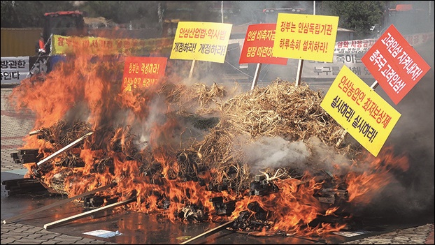 ÇöÀç Àλï³ó¾÷ÀÌ ±âŸÀÛ¹°(µµ¶óÁö, °í±¸¸¶)º¸´Ù ¸øÇÑ ¼öÀͱ¸Á¶¸¦ °®°í ÀÖÀ½¿¡µµ Á¤ºÎ´Â ¾Æ¹«·± Á¶Ä¡µµ ´ëÃ¥µµ ¾øÀ¸¸ç, ´ëÇѹα¹ ´ëÇ¥ ³ó»ê¹°À̶ó ÇÏ¿© À¯ÀÏÇÏ°Ô Àλï»ê¾÷¹ý±îÁö Á¦Á¤ÇØ ±ÔÁ¦¿Í ±ÔÁ¤¸¸ ÀÖÀ» »Ó ³ó¾÷ÀεéÀÇ »ýÁ¸Àº ³ª¸ô¶ó¶ó ÇÑ´Ù´Â ÁÖÀåÀÌ´Ù.