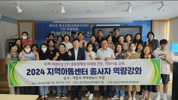 ±Ý»ê±º Áö¿ª¾Æµ¿¼¾ÅÍÇùÀÇȸ(ȸÀå È«´ë¿µ)´Â Áö³ 8¿ù 27Àϰú 29ÀÏ ÀÌÆ²°£ Áö¿ª¾Æµ¿¼¾ÅÍ Á¾»çÀÚ ¿ª·®°È±³À°À» ½Ç½ÃÇß´Ù°í 10ÀÏ ¹àÇû´Ù.