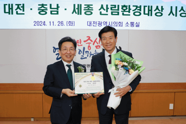 ¹Ú¹üÀÎ ±º¼ö°¡ Áö³ 26ÀÏ ´ëÀü±¤¿ª½ÃÀÇȸ ¼ÒÅë½Ç¿¡¼ ¿¸° ¡®2024³â Á¦4ȸ ÃæÃ»³²µµ »ê¸²È¯°æ´ë»ó¡¯ ½Ã»ó½Ä¿¡¼ ÀÚÄ¡ºÎ¹® ´ë»óÀ» ¼ö»óÇß´Ù.