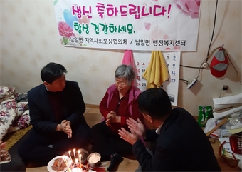 ±Ý»ê±º ³²ÀϸéÁö¿ª»çȸº¸ÀåÇùÀÇü(°ø°øÀ§¿øÀå °­¸í¹è, ¹Î°£À§¿øÀå Á¶¹ÎÈ£)´Â Áö³­ 16ÀÏ »ýÀÏÀ» ¸ÂÀº °ü³» Àú¼Òµæ ¾î¸£½Å °¡Á¤À» ¹æ¹®ÇØ »ýÀÏÀÜÄ¡¸¦ ¿­¾ú´Ù.¹Ì¿ª±¹,...