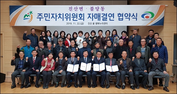 ¡ãÁö³­ 22ÀÏ Áø»êäñÇູ´©¸®¼¾ÅÍ¿¡¼­ Áø»ê¸é°ú ºÒ´çµ¿ ÁÖ¹ÎÀÚÄ¡À§¿øÈ¸ ȸ¿øµé ¹× °ü°èÀÚµéÀÌ Çù¾àÀ» ¸ÎÀº ÈÄ ±â³ä»çÁøÀ» ÃÔ¿µÇÏ´Â ¸ð½À.