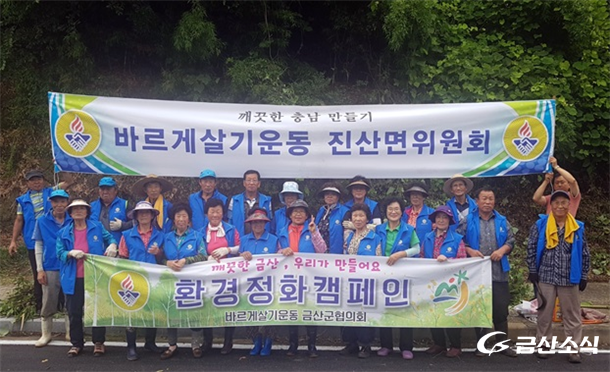 ¹Ù¸£°Ô »ì±â ¿îµ¿ ±Ý»ê±º Áø»ê¸é À§¿øÈ¸(À§¿øÀå Áø¼ºÇÐ) ȸ¿ø 30¿©¸íÀÌ ¡®±ú²ýÇÑ È¯°æ ¿ì¸®°¡ ¸¸µé¾î¿ä¡¯¶ó´Â ½½·Î°Ç ¾Æ·¡ ¿ÀÀü7½Ã Áø»ê¸é À¾³»¸® ÇÏõº¯°ú µµ·ÎÁÖº¯ÀÇ È¯°æÁ¤¸® Ä·ÆäÀÎÀ» ¹ú¿© ŸÀÇ ¸ð¹üÀÌ µÇ°í ÀÖ´Ù.