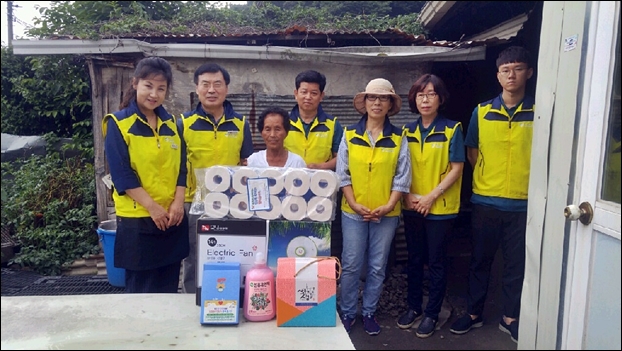 Áø»ê¸é(¸éÀå ±æÁø¼·)°ú Áö¿ª»çȸº¸ÀåÇùÀÇü(À§¿øÀå ¼­Á¤±³)´Â Áø»ê¸é¿¡ °ÅÁÖÇÏ´Â º¹Áö»ç°¢Áö´ë ´ë»óÀÚ 31°¡±¸¸¦ ´ë»óÀ¸·Î 120¿©¸¸ ¿ø »ó´çÀÇ ¿©¸§¿ëǰ 4Á¾(¸ð±âÀå, ¸ð±âÅðÄ¡±â, ¼±Ç³±â, ¾ÆÀ̽º¹Ú½º)À» °¢°¢ Àü´ÞÇß´Ù.