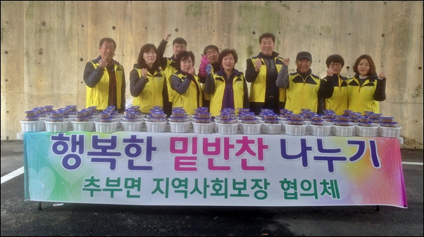 À̳¯ ÇùÀÇü ȸ¿ø 10¸íÀº À̸¥ ¾ÆÄ§ºÎÅÍ ÁغñÇÑ Ã¤¼Ò¿Í Àç·á¸¦ ¼ÕÁúÇÏ°í ¾î¸£½ÅµéÀÌ ÁÁ¾ÆÇÏ´Â ÀåÁ¶¸²°ú À°°³Àå µî ¹Ø¹ÝÂùÀ» ÁغñÇØ Ãߺθ鿡 °ÅÁÖÇÏ´Â ¾î·Á¿î 50°¡±¸¿¡ Á÷Á¢ Àü´ÞÇß´Ù.  ¿À¿À³² À§¿øÀåÀº ¡°ÁÁÀº ¹ÝÂùÀ¸·Î ½Ä»çÇÏ°í ½Í¾îµµ ¿©°ÇÀÌ ¾È µÇ´Â µ¶°Å ¾î¸£½Åµé°ú Àå¾ÖÀÎ µîÀ» À§ÇØ ¸ÀÀÖ´Â ¹ÝÂùÀ» Á¤¼º½º·¹ ÁغñÇß´Ù. ÁغñÇÑ À½½Ä Àß µå½Ã°í ´Ã °Ç°­ÇÏ±æ ¹Ù¶õ´Ù¡±°í ¸»Çß´Ù.