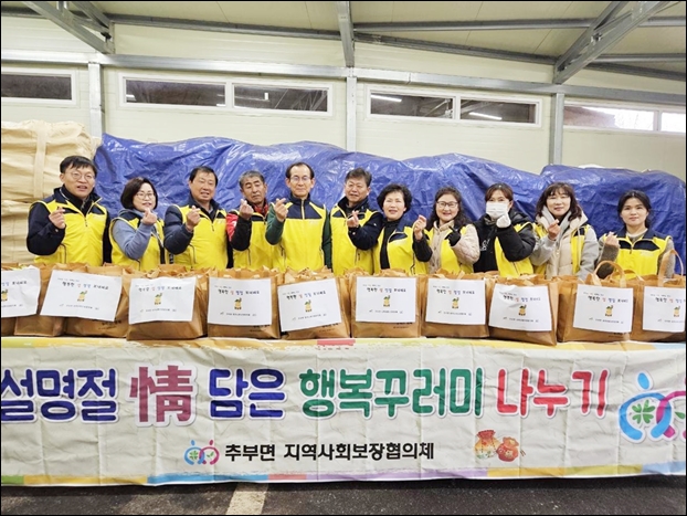À̳¯ ÇùÀÇü À§¿ø 12¸íÀº ÃߺθéÇàÁ¤º¹Áö¼¾ÅÍ¿¡ ¸ð¿© ¶±±¹¶±, ¼Ò°í±â, ½Ä¿ëÀ¯ µî 7Á¾À» ´ãÀº Çູ ²Ù·¯¹Ì »óÀÚ¸¦ ÁغñÇÑ ÈÄ °ü³» Àú¼Òµæ °¡±¸ 60°÷¿¡ ¸íÀý Àλç¿Í ÇÔ²² Àü´ÞÇß´Ù.