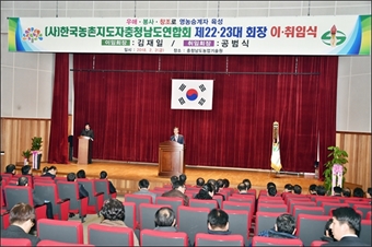 Á¦23´ë Çѱ¹³óÃÌÁöµµÀÚÃæ³²µµ¿¬ÇÕȸÀå¿¡ °ø¹ü½Ä ȸÀå(60¡¤±Ý»ê¡¤»çÁø)ÀÌ ÃëÀÓÇØ »õ·Î¿î ÀÓ¿øÁø°ú Áö¿ª ³ó¾÷³óÃÌÀÇ ¹ßÀü¿¡ ÈûÀ» º¸ÅÄ´Ù.Ãæ³²µµ ³ó¾÷±â¼ú¿øÀº Áö³­ 2...