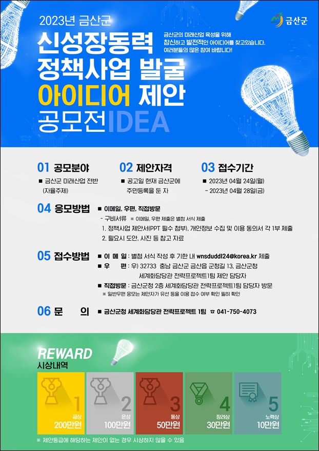 À̹ø °ø¸ð´Â ±ºÀÇ ¹Ì·¡Àü·«»ê¾÷ Àü¹Ý¿¡ °üÇÑ ÁֹεéÀÇ Ã¢ÀÇÀûÀ̰í Â÷º°ÈµÈ Á¦¾ÈÀ» µè±â À§ÇØ ÃßÁøµÇ¸ç, Á¦¾È ÀÚ°ÝÀº ±º¿¡ Áֹεî·ÏÀ» ÇÑ ±º¹ÎÀ¸·Î ¿À´Â 24ÀϺÎÅÍ 28ÀϱîÁö ±Ý»ê±ºÃ» ¼¼°èÈ´ã´ç°ü¿¡ À̸ÞÀÏ, ¿ìÆí, ¹æ¹® µî ¹æ¹ýÀ¸·Î Á¢¼öÇÏ¸é µÈ´Ù.