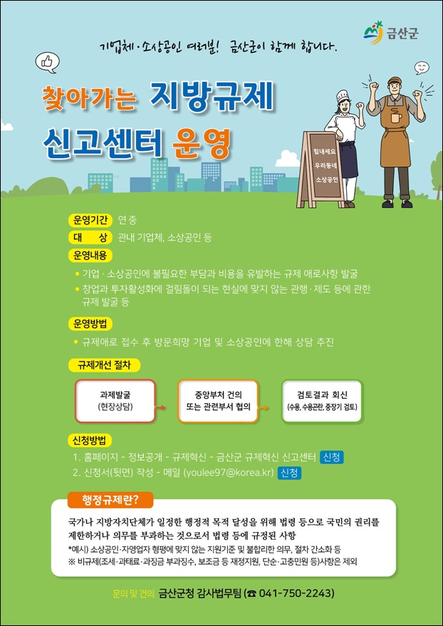 ±Ý»ê±ºÀº ¿ÃÇØ °ü³» ±â¾÷ü¿Í ¼Ò»ó°øÀÎ µîÀ¸·Î ºÎÅÍ ºÒÇÕ¸®ÇÑ ±ÔÁ¦¿¡ °üÇÑ ÀǰßÀ» µè°í ÇØ°á¹æ¾ÈÀ» ¸ð»öÇϱâ À§ÇØ ¡®Ã£¾Æ°¡´Â Áö¹æ±ÔÁ¦ ½Å°í¼¾ÅÍ¡¯¸¦ ¿î¿µÇϰí ÀÖ´Ù°í 6ÀÏ ¹àÇû´Ù.