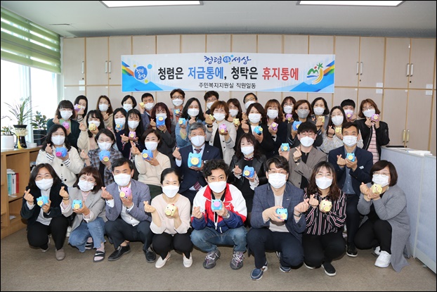 ¸ÕÀú Áֹκ¹ÁöÁö¿ø½ÇÀº ¡®Ã»·ÅÀº Àú±ÝÅë¿¡, ûŹÀº ÈÞÁöÅë¿¡¡¯¶ó´Â ½½·Î°ÇÀ» ¾Æ·¡ û·Å ½ÇõÀ» ´ÙÁüÇϸç û·Å Àú±ÝÅëÀ» ³ª´³´Ù. Á÷¿øµéÀº ¿¬¸»±îÁö û·Å Àú±ÝÅë¿¡ µ·À» ¸ð¾Æ Àü¾× ³ª´® Ä·ÆäÀο¡ ±âºÎÇÒ ¿¹Á¤ÀÌ´Ù.