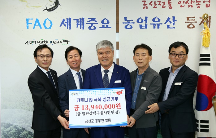 ±Ý»ê±º °ø¹«¿øµéÀº Áö³­ 14ÀÏ Äڷγª19ÀÇ È®»êÀ¸·Î ÀÎÇØ ¾î·Á¿òÀ» °Þ°í ÀÖ´Â ±º¹Îµé¿¡°Ô µµ¿òÀÌ µÇ°íÀÚ Ãæ³²»çȸº¹Áö°øµ¿¸ð±Ýȸ¿¡ ¼º±Ý 1394¸¸ ¿øÀ» ÁöÁ¤ ±âŹÇß´Ù°í ¹àÇû´Ù.