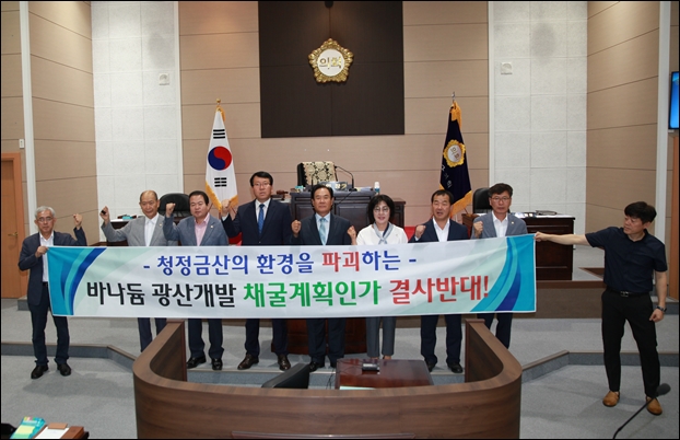 ÀÌ¿¡ ¡°±Ý»êÀÇ Ã»Á¤ À̹ÌÁö¸¦ ÇØÄ¡´Â ¹Ù³ªµã ±¤»ê°³¹ßÀ» Àý´ë ¹Ý´ëÇϸç, À̸§¸¸ ¹Ù²Û ¿ì¶ó´½ ä±¼ Àç ½Ãµµ¸¦ Áï°¢ Ã¶È¸ÇØ ÁÙ °Í°ú ±º¹ÎÀÇ »ýÁ¸±ÇÀ» À§ÇùÇÏ´Â ±Ý»ê±º ¹Ù³ªµã ±¤»ê°³¹ß °èȹÀ» Áï°¢ Áß´ÜÇØ ÁÙ °Í¡±À» °·ÂÈ÷ Ã˱¸Çß´Ù.