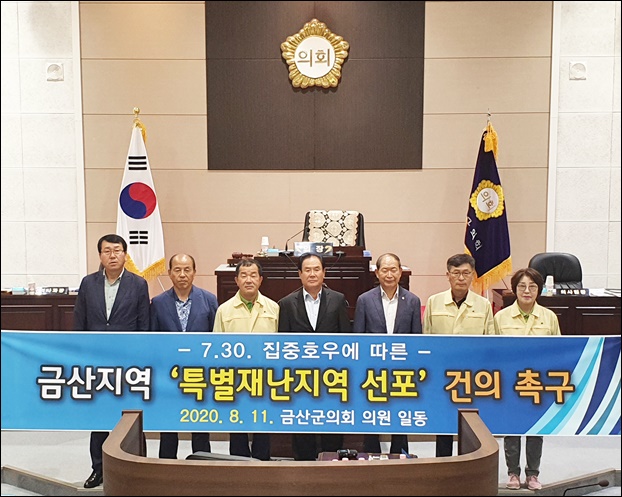 ¡ã±Ý»ê±ºÀÇȸ ¾È±âÀü ÀÇÀå(¿ÞÂÊ ¼¼ ¹øÂ°)¸¦ ºñ·ÔÇÑ ±ºÀÇȸ ÀÇ¿øµéÀÌ ±Ý»êÁö¿ª   ¡®±Ý»êÁö¿ª Ưº°Àç³­Áö¿ª ¼±Æ÷¡¯ Ã˱¸¸¦ À§ÇÑ °ÇÀǹ®À» äÅÃÇÑ ÈÄ ±â³äÃÔ¿µÀ» Çϴ ¸ð½À. ¨Ï±Ý»ê±ºÀÇȸ
