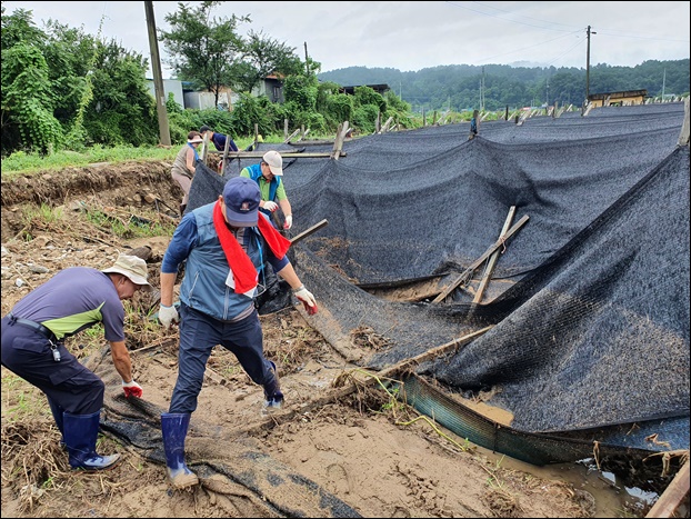 ±Ý»ê±ºÀÇȸ(ÀÇÀå ¾È±âÀü)°¡ ÁýÁßÈ£¿ì·Î ÇÇÇØ°¡ ¹ß»ýÇÑ Áö¿ªÀÇ Á¶¼ÓÇÑ º¹±¸¸¦ À§ÇØ ÀÏ¼Õ µ½±â Áö¿ø¿¡ ³ª¼¹´Ù.