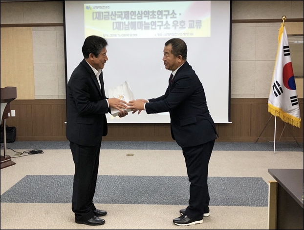 ¾È ÀÇ¿øÀº ¡°±Ý»ê±¹Á¦Àλï¾àÃÊ¿¬±¸¼ÒÀÇ ¾à¸®È¿´É ¹× Ȱ¼º°ËÁõ °ü·Ã Ưȭ±â¼ú°ú ³²Çظ¶´Ã¿¬±¸¼ÒÀÇ Á¦Ç°È­GMP½Ã¼³ÀÇ Á¦ÈÞ¸¦ ÅëÇØ ¾ç Áö¿ªÀÇ Æ¯È­ÀÛ¹°ÀÎ Àλï°ú ¸¶´ÃÀÇ Àü·«Á¦Ç°À» °³¹ßÇÏ¿© Àü ±¹¹ÎÀÌ °Ç°­ÇØ Áö´Â °è±â°¡ µÇ°í, Áö¿ª»ê¾÷ Ȱ¼ºÈ­¸¦ À§ÇÑ »õ·Î¿î Àü·«À» µµÃâÇÒ ¼ö ÀÖÀ» °ÍÀ¸·Î ±â´ëÇÑ´Ù¡±°í °­Á¶Çß´Ù.