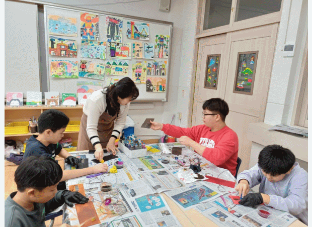 °¡Á×°ø¿¹ Àü¹® °­»ç°¡ Çб³¸¦ ¹æ¹®ÇØ ÁøÇàÇÑ ¼ö¾÷¿¡¼­ ÇлýµéÀº ¡®³ª¸¸ÀÇ Áö°© ¸¸µé±â¡¯¿Í ¡®°¡Á× ¿¬ÇʲÈÀÌ ¸¸µé±â¡¯ Áß ¿øÇϴ Ȱµ¿À» ¼±ÅÃÇØ Á¤¼º½º·´°Ô ÀÛ¾÷À» Çß´Ù.