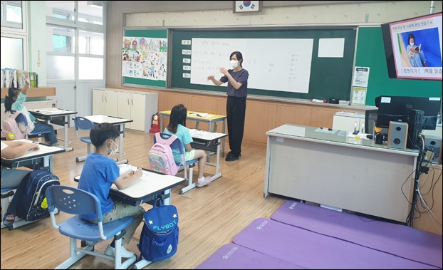 ¶ÇÇÑ 1Çг⠹ÚÁ¤Çý ±³»ç´Â ÀÌ»¡ ±«¹°ÀÌ ¹ÞħÀÖ´Â ±ÛÀÚ¸¦ ´Ù¸Ô¾î¹ö·È´Ù°í ¹ÞħÀ» ã¾Æº¸ÀÚ·Î ½ÃÀÛÇßÀ¸¸ç, 2Çгâ ÀÌ¿ë½Å ±³»ç´Â ÇлýµéÀÇ ´«³ôÀÌ¿¡ ¸Â°Ô ²Ù¸çÁÖ´Â ¸»À» ³Ö¾î ±Þ¿ì¸¦ ĪÂùÇØ ÁÖ°í, ³îÀÌ È°µ¿À¸·Î ¼ö¾÷ÀÇ Áñ°Å¿ò°ú Àμº±³À°±îÁö °âÇØ ÁöµµÇϸç Àç¹ÌÀÖ°Ô ±¹¾î ½Ã°£À» À̲ø¾ú´Ù.