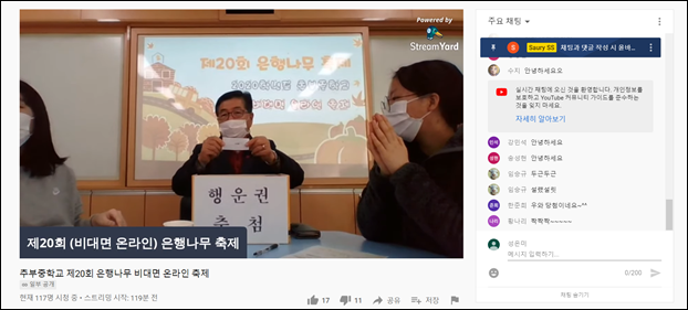 ±Ý»ê ÃߺÎÁßÇб³(±³Àå ±èÁø±¸)´Â Áö³ÇØ 12¿ù31ÀÏ ¡®2020Çг⵵ Á¦20ȸ ÀºÇ೪¹« ÃàÁ¦¡¯¸¦ ÀÎÅÍ³Ý »ý¹æ¼ÛÀ¸·Î ÁøÇàÇß´Ù°í ¹àÇû´Ù.