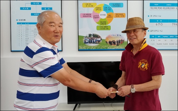 ¡ãÁ¶½Å¿µ ±Ý»ê±³À°»ç¶û ÀåÇÐÀç´Ü ÀÌ»çÀå(¿ÞÂÊ)ÀÌ ¼ö±â °ø¸ðÀü¿¡¼ ¿ì¼ö»óÀ» ¼ö»óÇÑ ±èÇö¿ë¾¾¿¡°Ô ±Ý»ê»ç¶û »óǰ±ÇÀ» Àü´ÞÇÏ´Â ¸ð½À.
