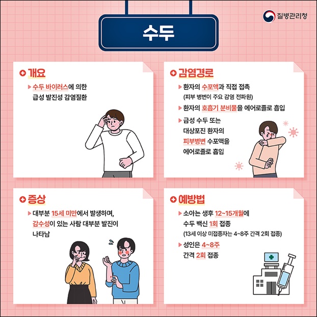 ¼öµÎ ¿¹¹æÀ» À§Çؼ­´Â ¡ã30ÃÊ ÀÌ»ó ¼Õ ¾Ä±â ¡ã±âħ ½Ã ¿Ê¼Ò¸Å·Î ÀÔ°ú ÄÚ °¡¸®±â ¡ãÁÖ±âÀûÀ¸·Î ½Ç³» ȯ±âÇÏ±â µî °³ÀÎ ¿¹¹æ¼öÄ¢ Áؼö°¡ °¡Àå Áß¿äÇϸç, ¹ßÁø 1~2ÀÏ ÀüºÎÅÍ Àü¿°±â¿¡ ÇØ´çÇϹǷΠÁý´Ü ³» À¯Çà ½Ã ¸¶½ºÅ©¸¦ Âø¿ëÇÒ Çʿ䰡 ÀÖ´Ù.