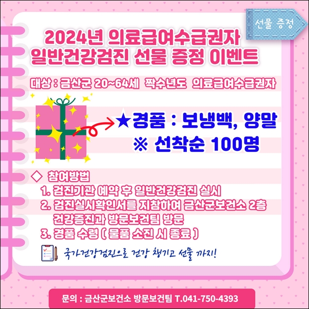 ±Ý»ê±ºÀº ¿ÃÇØ ÀÇ·á±Þ¿©¼ö±Þ±ÇÀÚ Áß ÀϹݰǰ­°ËÁø´ë»óÀÚÀÎ 20~64¼¼ ¦¼ö³âµµ Ãâ»ýÀÚ¸¦ ´ë»óÀ¸·Î ¿À´Â 10¿ù 31ÀϱîÁö ¼±Âø¼ø ¼±¹° ÁõÁ¤ À̺¥Æ®¸¦ ½Ç½ÃÇÑ´Ù°í 24ÀÏ ¹àÇû´Ù.
