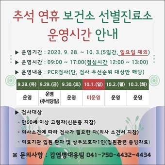 ±Ý»ê±ºº¸°Ç¼Ò, Ãß¼® ¿¬ÈÞ ¼±º°Áø·á¼Ò ¿î¿µ