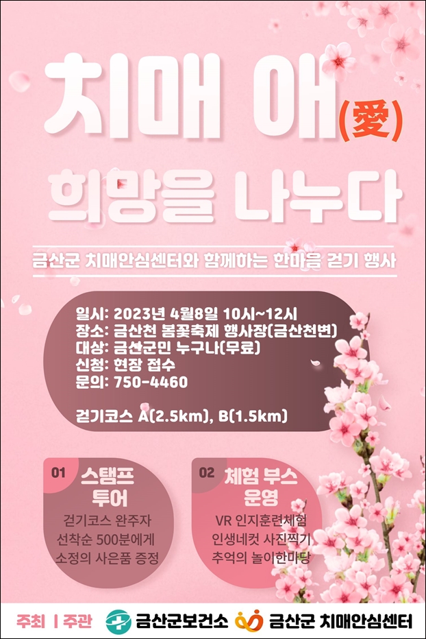 ±Ý»ê±ºº¸°Ç¼Ò´Â ¿À´Â 8ÀÏ ±Ý»êÀ¾¿¡¼­ ¿­¸®´Â ±Ý»êõ º½²É ÃàÁ¦Àå¿¡¼­ ¡®Ä¡¸Å ¾Ö(äñ)Èñ¸ÁÀ» ³ª´©´Ù¡¯¸¦ ÁÖÁ¦·Î ¡®Á¦4ȸ ÇѸ¶À½ Ä¡¸Å±Øº¹ °È±â¡¯ Çà»ç¸¦ °³ÃÖÇÑ´Ù°í 5ÀÏ ¹àÇû´Ù.