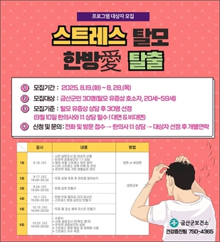 ±Ý»ê±ºº¸°Ç¼Ò´Â ½ºÆ®·¹½º·Î ÀÎÇÑ Å»¸ð Áõ»óÀ» °Þ´Â ±º¹ÎÀ» ´ë»óÀ¸·Î ÇÑ¹æ °Ç°­ÁõÁø ÇÁ·Î±×·¥ ¡®2025³â ½ºÆ®·¹½º Å»¸ð Çѹæ¾Ö(äñ) Å»Ã⡯ ÇÁ·Î±×·¥ Âü¿© ´ë»óÀÚ¸¦...