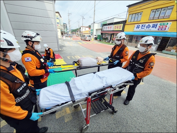 ÈÆ·ÃÀº »çÀü ¿¹°í ¾øÀÌ ½Ç½ÃµÇ´Â ºÒ½Ã ÈÆ·ÃÀ¸·Î, ÈÆ·Ã ´çÀÏ Àç³ »óȲÀÌ ºÎ¿©µÇ¸ç ±¸±Þ´ë¿ø Áß 1¸íÀÌ ±¸±Þ´ëÀåÀ¸·Î ÁöÁ¤µÅ ÇöÀåÀ» ÁöÈÖÇÏ°Ô µÈ´Ù. Àç³ »óȲ¿¡ µû¸¥ Ã⵿ Áö·ÉºÎÅÍ È¯ÀÚ ºÐ·ù, ÀÀ±Þóġ, À¯°ü±â°ü Çù¾÷, »çÈÄ Çǵå¹é±îÁö Àü °úÁ¤À» ½ÇÁ¦ »óȲÀ¸·Î °¡Á¤ÇØ ÁøÇàµÈ´Ù.