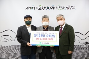 ±Ý»ê³óÇùÇùµ¿Á¶ÇÕ(Á¶ÇÕÀå ¹Ú»óÁø)°ú ±Ý»ê°£µðÇб³°¡ Áö³­ 28ÀÏ ±Ý»ê»ç¶û ½ÇõÀ» À§ÇÑ ÀåÇÐ±Ý 500¸¸ ¿øÀ» ±âŹÇß´Ù. ±Ý»ê³óÇùÀº À̳¯ ±âŹÇÑ 500¸¸ ¿øÀ» ºñ·Ô...