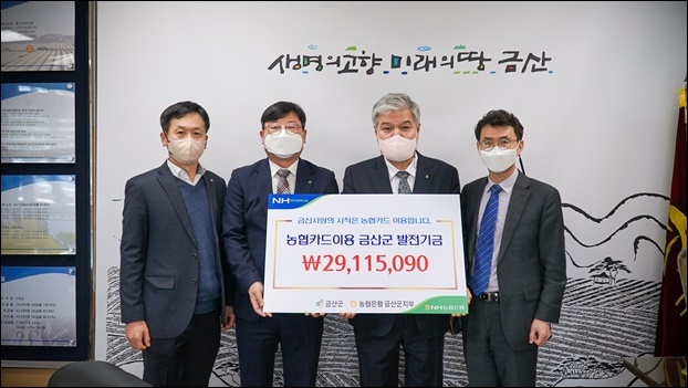 ±Ý»ê±ºÀº NH³óÇùÀºÇà ±Ý»ê±ºÁöºÎ°¡ Áö³­ 4ÀÏ ±Ý»ê±ºÀ» ¹æ¹®ÇØ ±Ý»ê»ç¶û¹ßÀü±â±Ý 2911¸¸ ¿øÀ» ±âŹÇß´Ù°í 7ÀÏ ¹àÇû´Ù.