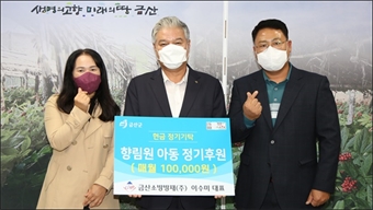 ±Ý»ê¼Ò¹æ¹æÀç(ÁÖ) À̼ö¹Ì ´ëÇ¥°¡ Áö³­ 12ÀÏ °ü³»¾Æµ¿¾çÀ°½Ã¼³¿¡ ¸Å¿ù 10¸¸ ¿øÀÇ Á¤±âÈÄ¿øÀ» Çϰڴٴ ¶æÀ» ¹àÇô ÁÖÀ§¸¦ ÈÆÈÆÇÏ°Ô Çϰí ÀÖ´Ù.ÀÌ ¾÷ü´Â ¼Ò¹æ¼³ºñ...